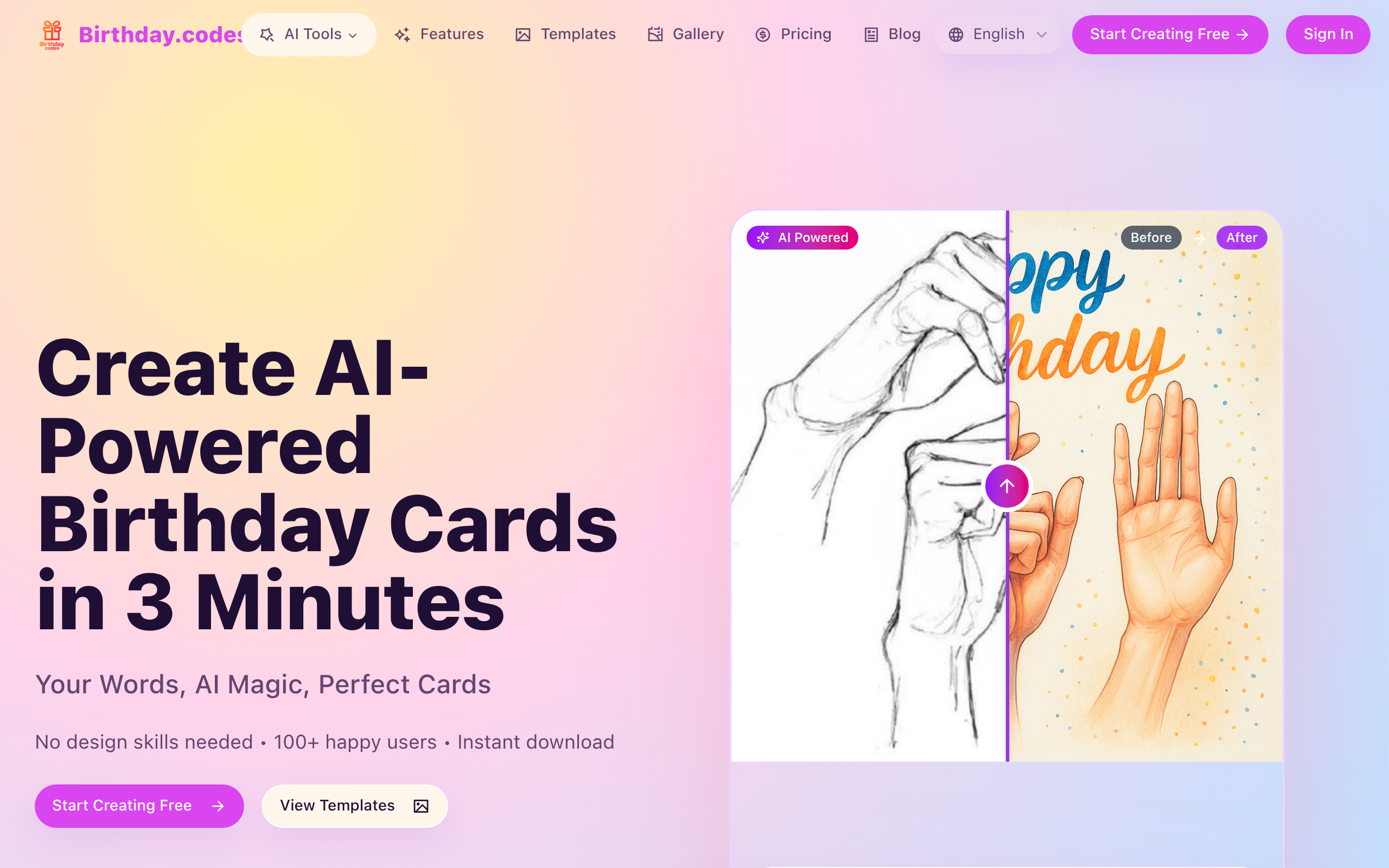 Birthday.codes helps you generate unique birthday card designs quickly. Choose a template, enter recipient details and a message tone, and generate multiple card variations. Pick your favorite and download for sharing or printing. It’s ideal for last-minute greetings, social posts, and communities or teams that need celebratory visuals without design skills.