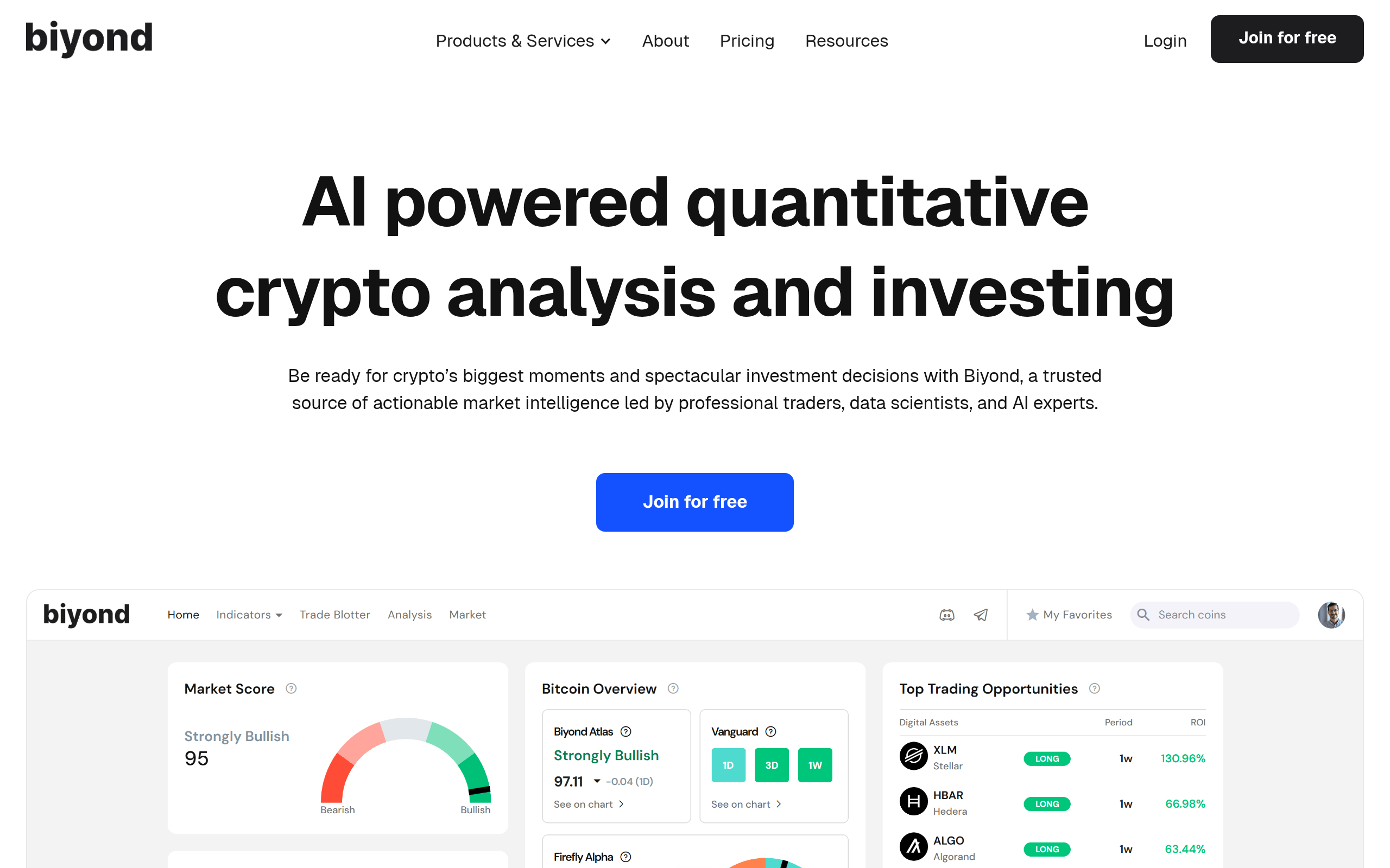 Biyond is a market intelligence platform for cryptocurrency traders. It combines expert human analysis with AI-driven trading indicators to provide a comprehensive view of the market. The platform aims to help traders navigate the volatile crypto markets with better insights and tools.