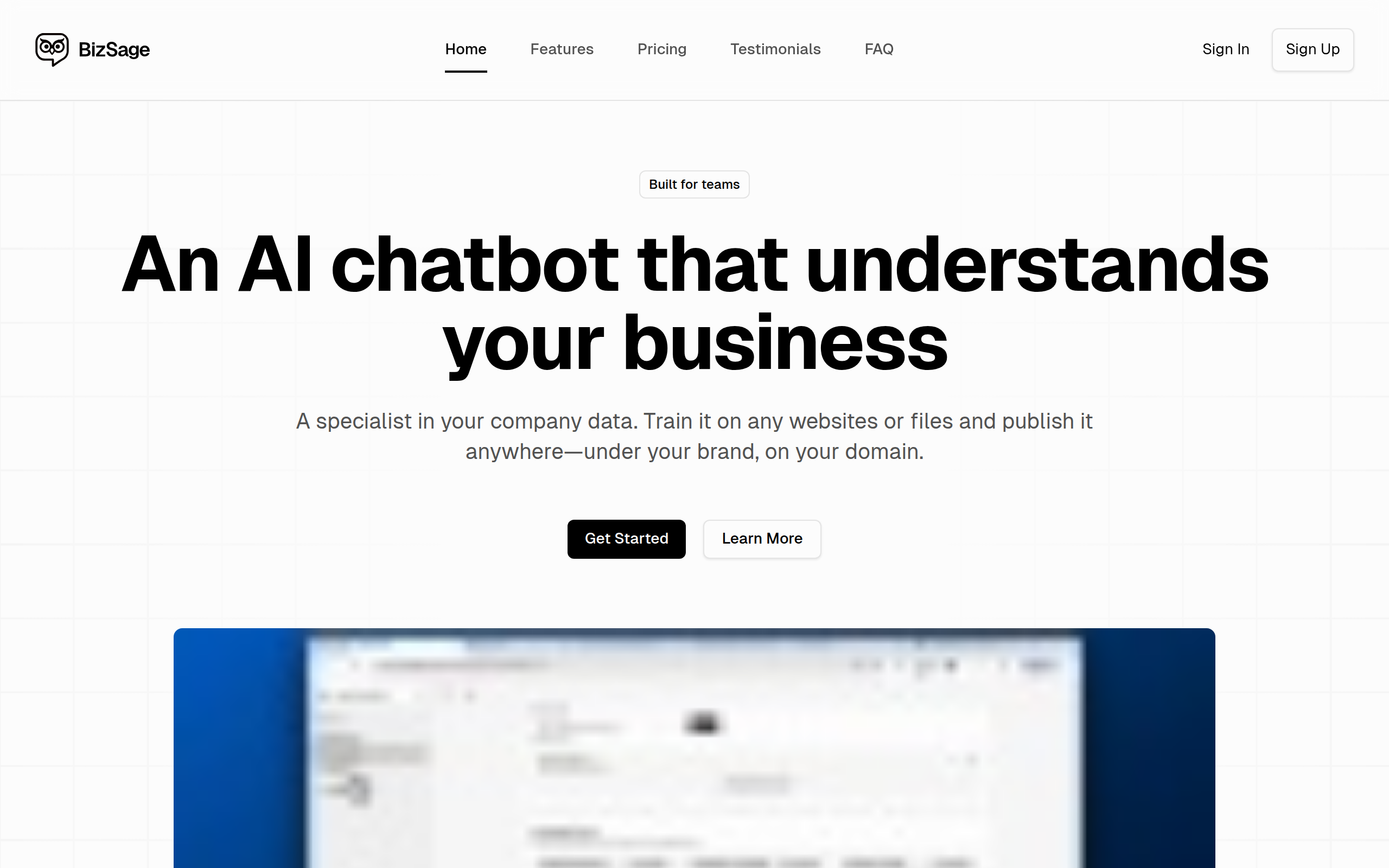 BizSage is a company‑trained AI chatbot for small and growing teams. It learns from your website and files, answers in your brand voice, and says "I don't know" when it's not confident—so customers and staff get trustworthy help. Setup takes minutes: add websites and files (2 min), teach tone and sample Q&A (2 min), then publish anywhere—share a link, embed on your site, or run it on your own subdomain (1 min). BizSage keeps answers fresh with scheduled auto‑refresh (daily/weekly/monthly). Pay per company and invite unlimited users. From Starter to Scale plans, you get a private Company Brain, scoped agents, unbranded embeds (Team+), and optional analytics and a dedicated success manager at Scale. Use BizSage to deflect repetitive questions, power on‑site sales and support, and give your team instant access to consistent, on‑brand knowledge.