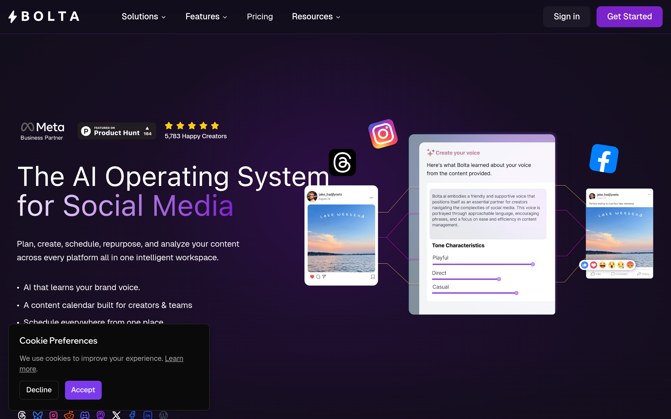 Bolta.ai is a social media operating system that helps creators, founders, and teams plan, write, review, and publish content consistently across plat