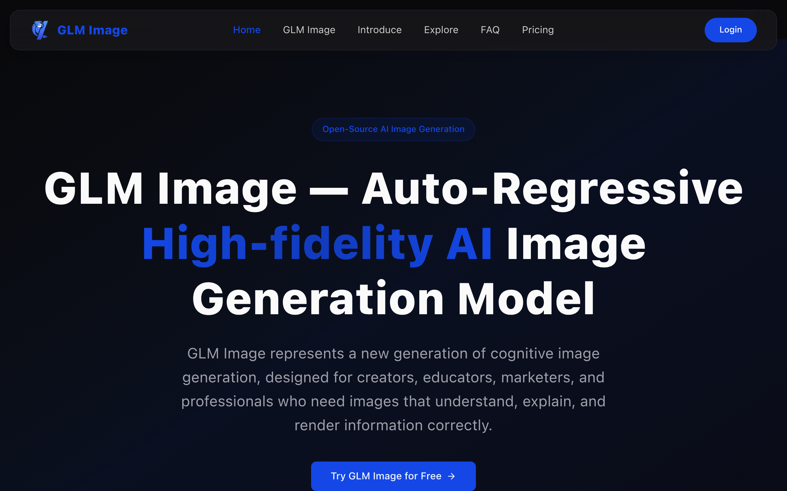 GLM Image is an advanced AI-powered image generation tool built around a hybrid autonomous architecture that emphasizes semantic understanding, accurate text rendering, and high-fidelity visuals. It’s designed not just to create aesthetically pleasing artwork, but also to produce informative and communication-ready images — such as posters, infographics, diagrams, presentation slides, and educational graphics — where clarity and meaning matter as much as visual quality. How It Works The user typically enters a prompt — describing the desired image in natural language — and optionally uploads reference images to guide style or detail. GLM Image then processes this input through its semantic understanding layer, generates a structured representation, and renders the final image with both text and visuals accurately aligned to your intent. Outputs are high resolution and optimized for digital or print uses. Usage & Pricing GLM Image offers free trials for new users, and paid plans are based on credit bundles that allow a certain number of image generations. Credits never expire, and paid tiers include commercial licensing and priority support. Why Choose GLM Image? GLM Image positions itself as a practical tool for real-world visual communication rather than purely an artistic experiment. Its focus on readable text, semantic accuracy, and flexible editing makes it particularly valuable for professional design workflows, educational materials, and marketing applications where clarity and meaning are essential.