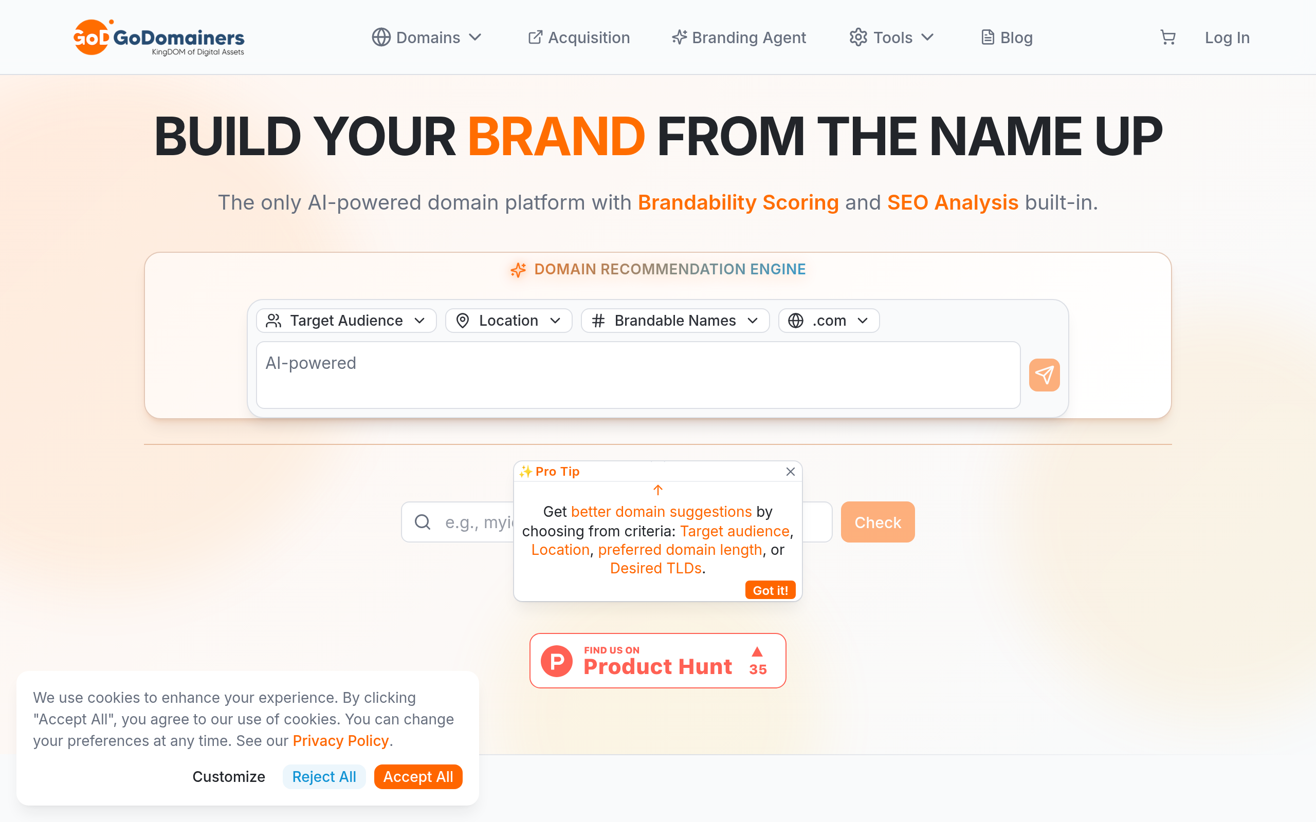 GoDomainers makes naming simple — instantly discover domains that match your brand with AI-powered suggestions.