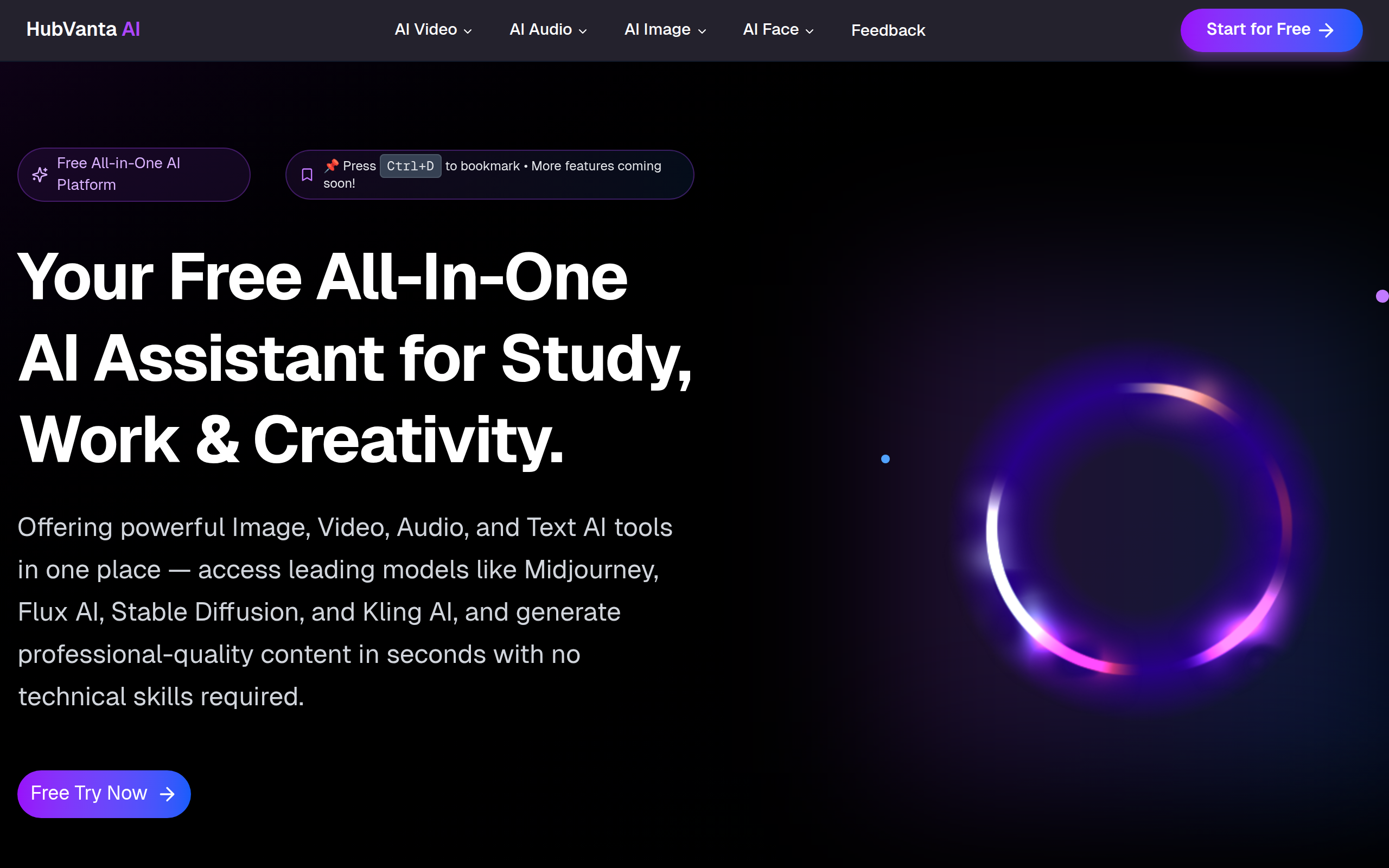 HubVanta is a powerful all-in-one Free AI content creation platform that brings together the latest image, video, and text generation tools in one place. Whether you’re a content creator, marketer, or solo entrepreneur, HubVanta lets you create stunning visuals, videos, and voiceovers for free without any technical skills. The platform integrates advanced AI models such as Sora 2, Kling AI, Veo 3, Midjourney, and Stable Diffusion, enabling users to generate high-quality media content instantly.