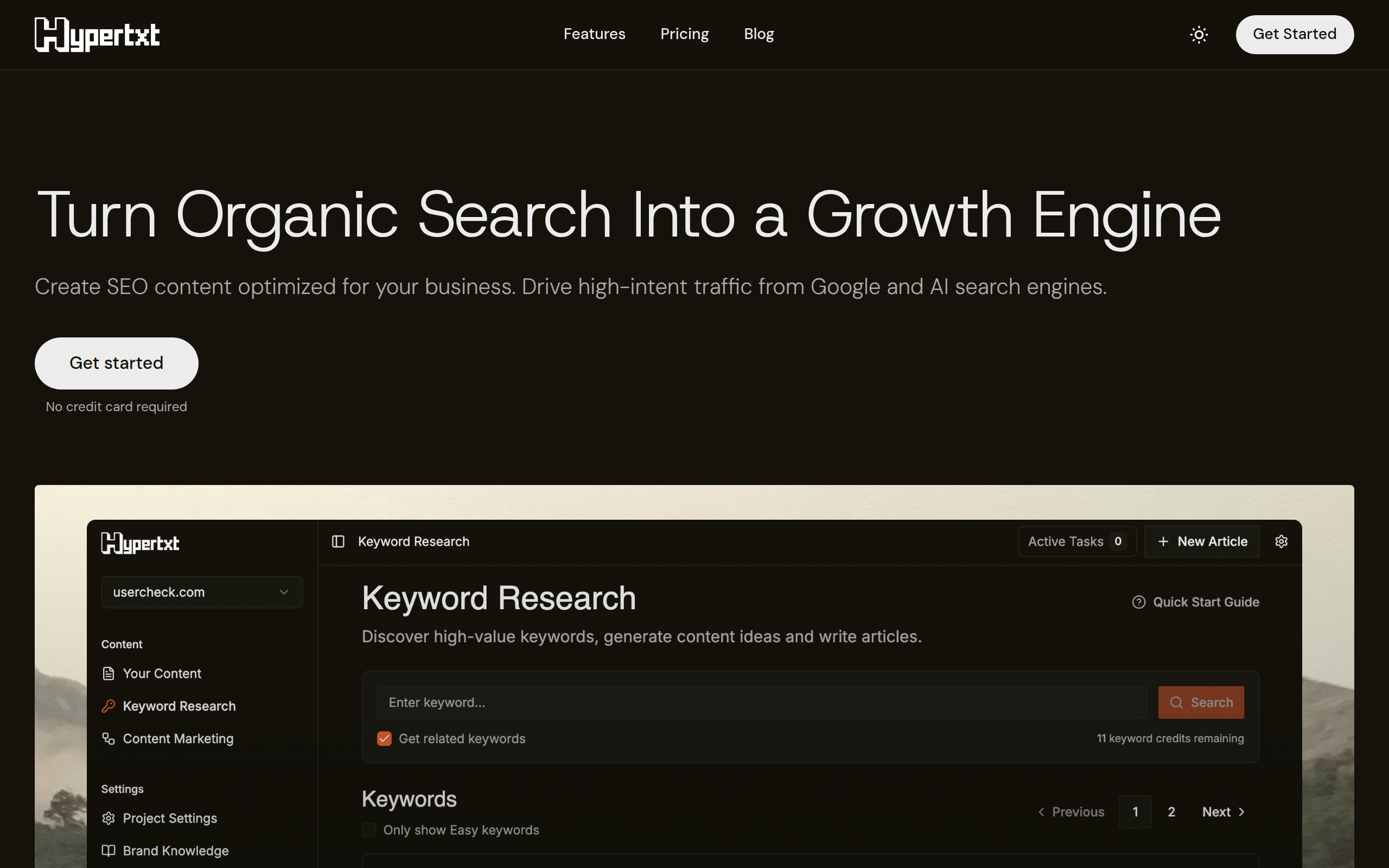 Hypertxt is an AI-powered platform that transforms your website and product data into SEO content that ranks, attracts traffic, and converts visitors. It identifies content gaps, analyzes competitors, and generates brand-aligned articles tailored to your audience. With multi-step writing workflows, research-backed outlines, and one-click publishing to WordPress, Ghost, and more, Hypertxt streamlines your entire content creation process. Built for founders and small teams, it helps you publish faster, grow your audience, and drive measurable results through smarter content.