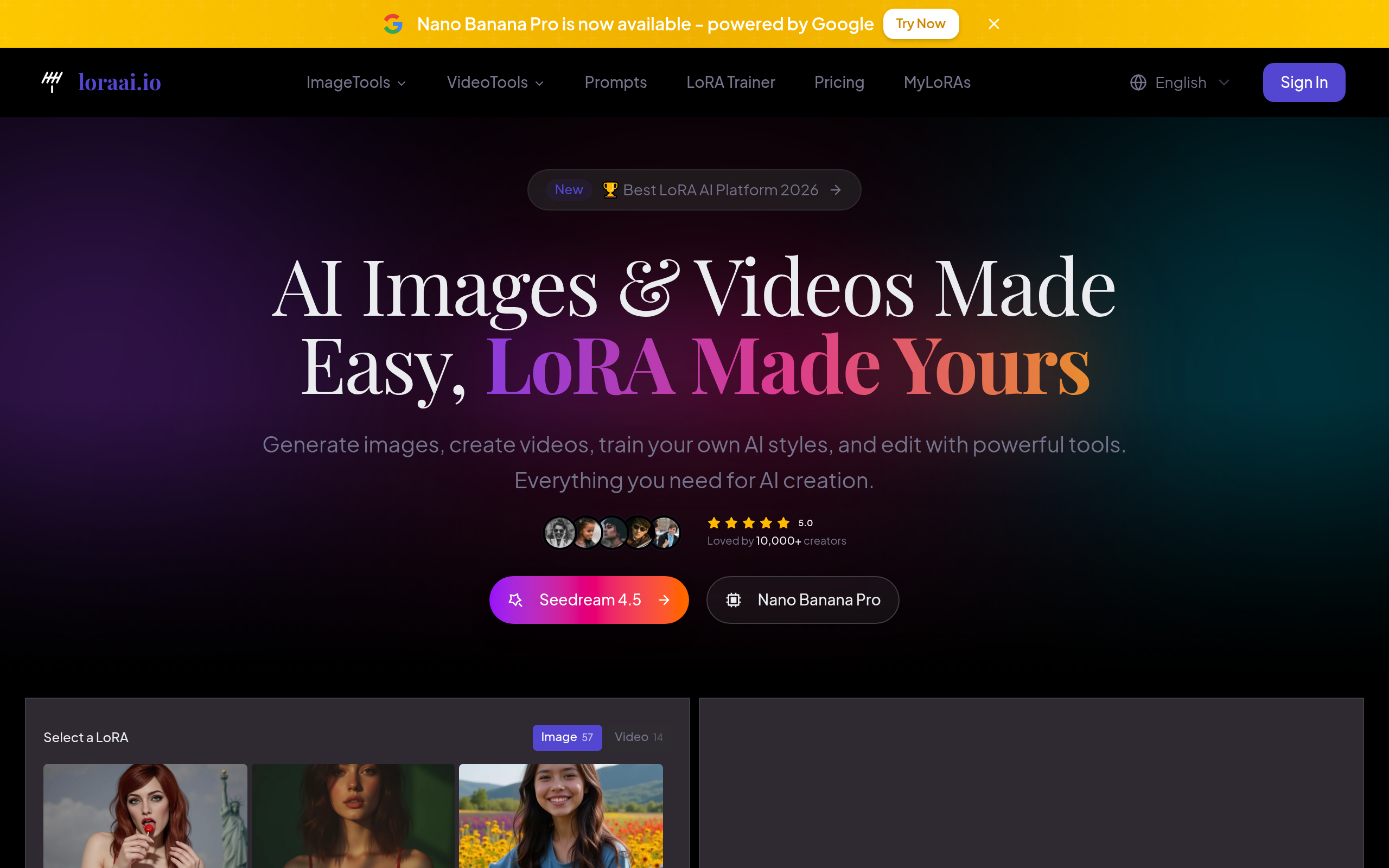 Generate images, create videos, train your own AI styles, and edit with powerful tools. Everything you need for AI creation.