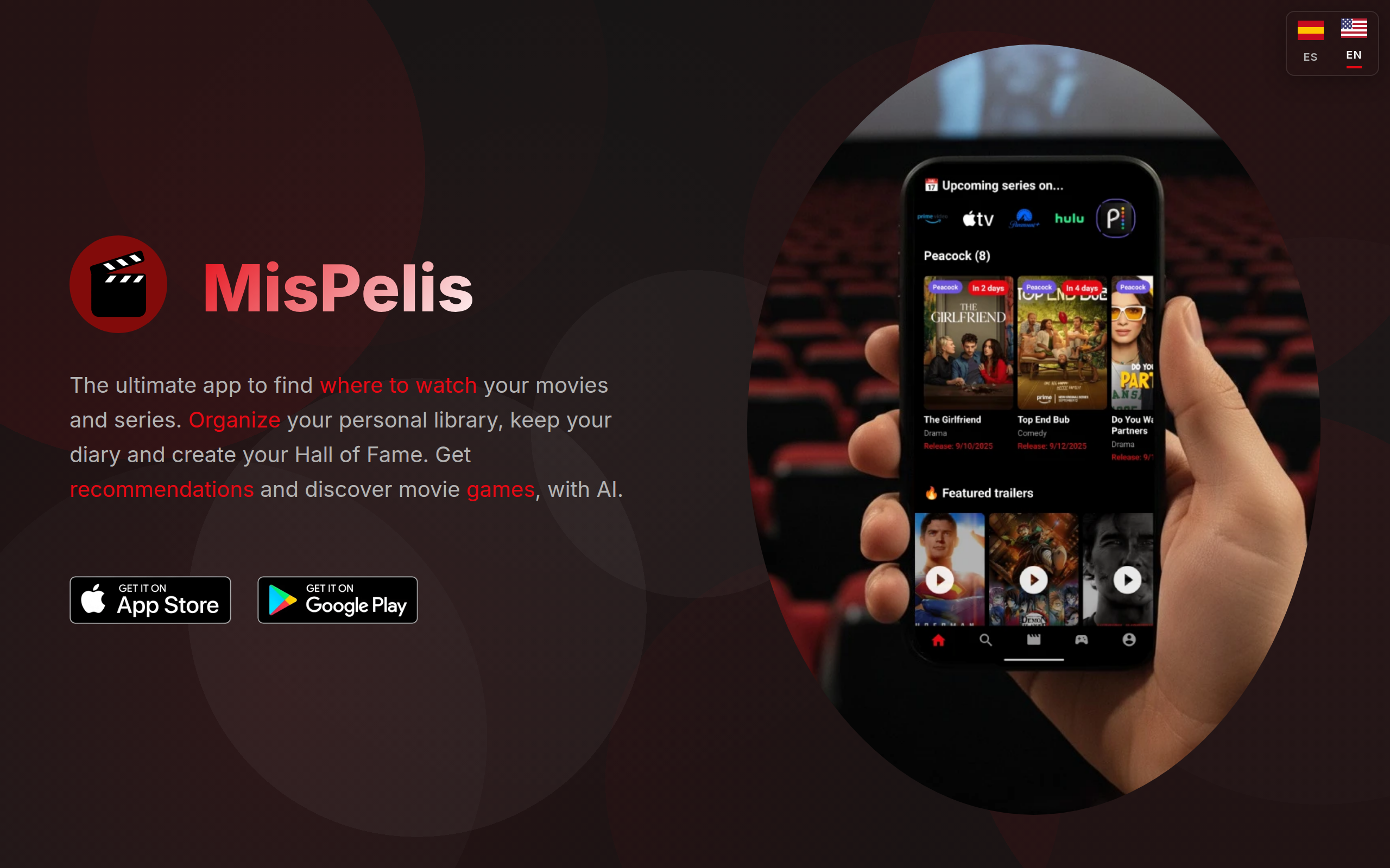 The ultimate app to find where to watch your movies and series. Organize your personal library, keep your diary and create your Hall of Fame. Get recommendations and discover movie games, with AI.