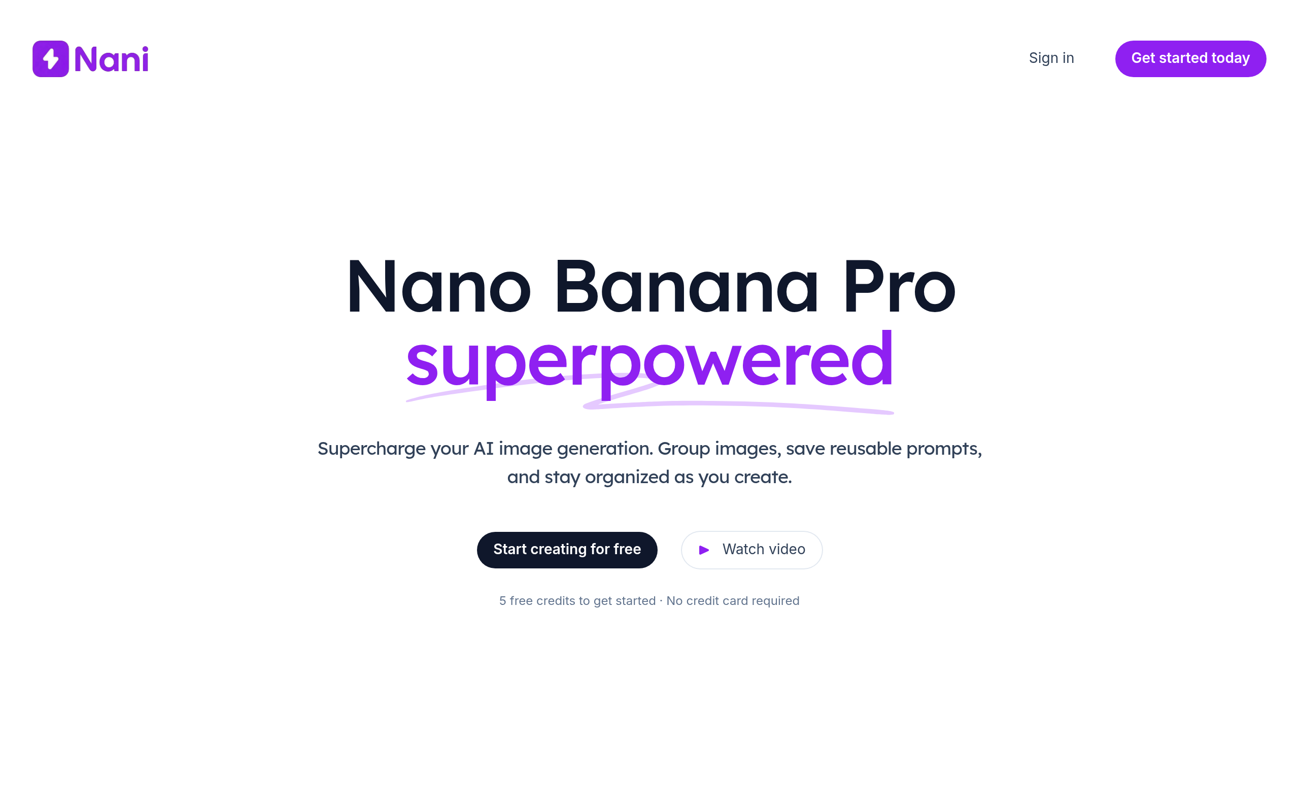 Most AI image tools are built for one-off generations, not regular repetitive work. You end up rewriting the same prompts, re-pasting the same reference images, and scrolling through endless feeds to find anything. Nani is a workflow tool built on top of Google's Nano Banana Pro (Gemini) that fixes the repetitive, disorganized experience of AI image generation. What Nani Does: - Image Sets – Upload reference images once and reuse them across all your generations. - Prompt Sets – Save style directions, character descriptions, and brand guidelines as reusable building blocks. - Composable Prompts – Combine saved sets naturally instead of rewriting everything from scratch. - Visual Iteration – Drag previous results back in as references without downloading and re-uploading. - Folder Organization – Keep your library organized as it grows instead of scrolling through one long feed. - Fast UI – No sluggish loading or navigation delays.