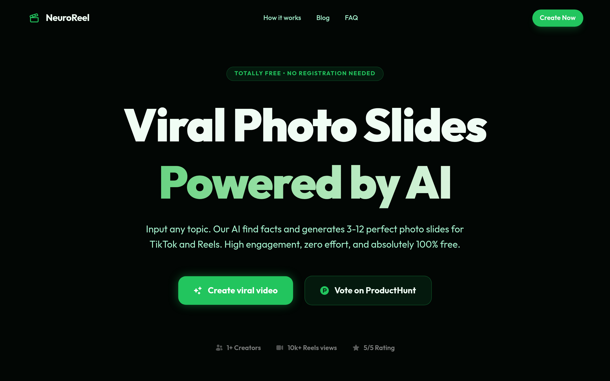 Outputs vertical, carousel-style photo slides optimized for TikTok, Instagram Reels and YouTube Shorts to maximize retention and distribution.