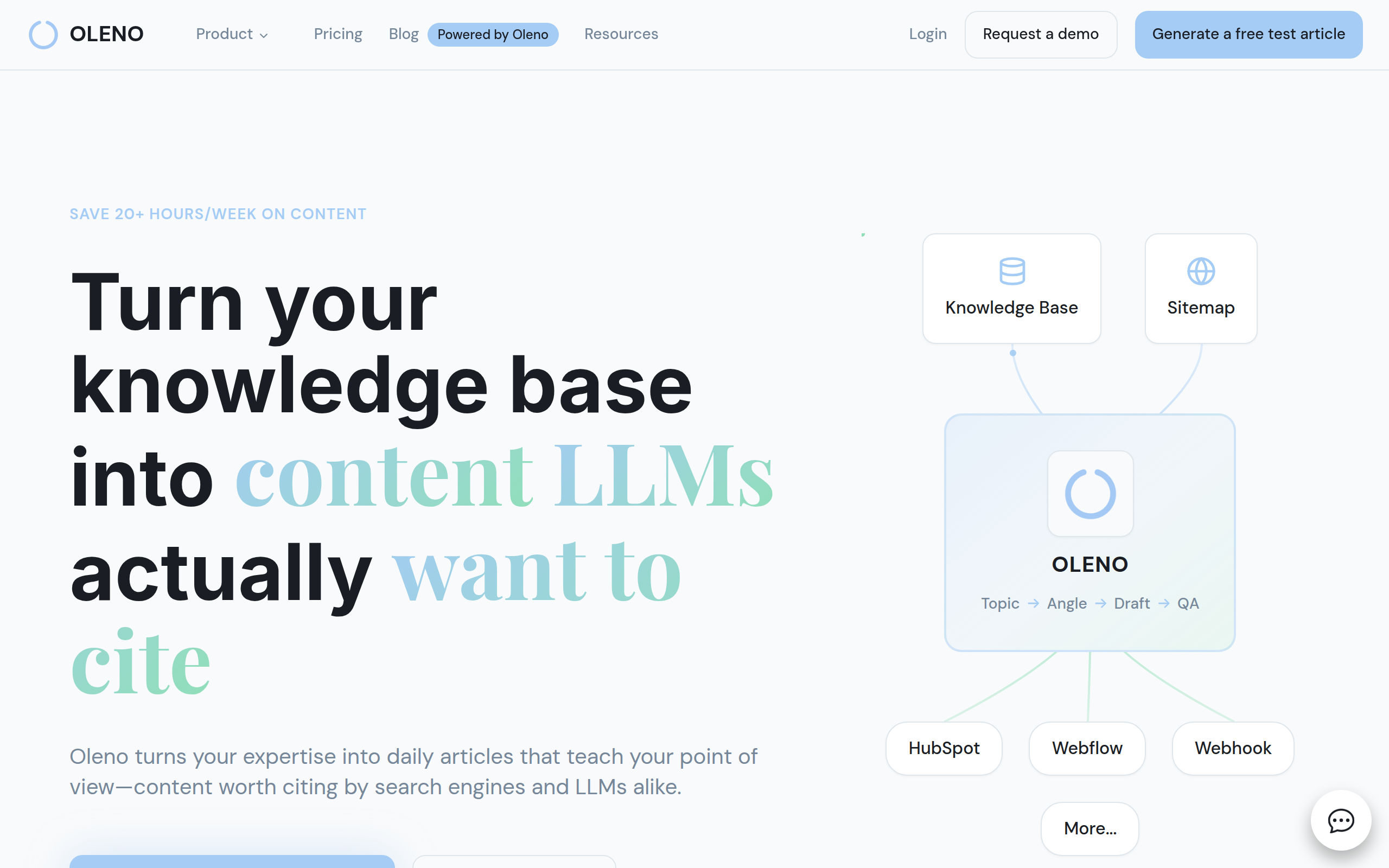 Oleno is the autonomous content engine built for programmatic SEO and LLM citation visibility. Traditional content tools generate articles. Oleno runs a complete system: discovering topics from your sitemap, grounding every piece in your knowledge base, and structuring content so it ranks in search engines and gets cited by AI models like ChatGPT, Perplexity, and Claude. The engine applies your brand voice and sales narrative to every article, runs 80+ QA checks to ensure accuracy and compliance, then publishes directly to your CMS. No prompts. No templates. No batch management. For B2B teams serious about organic growth, Oleno replaces the content ops stack with one autonomous system that compounds visibility across both discovery surfaces.