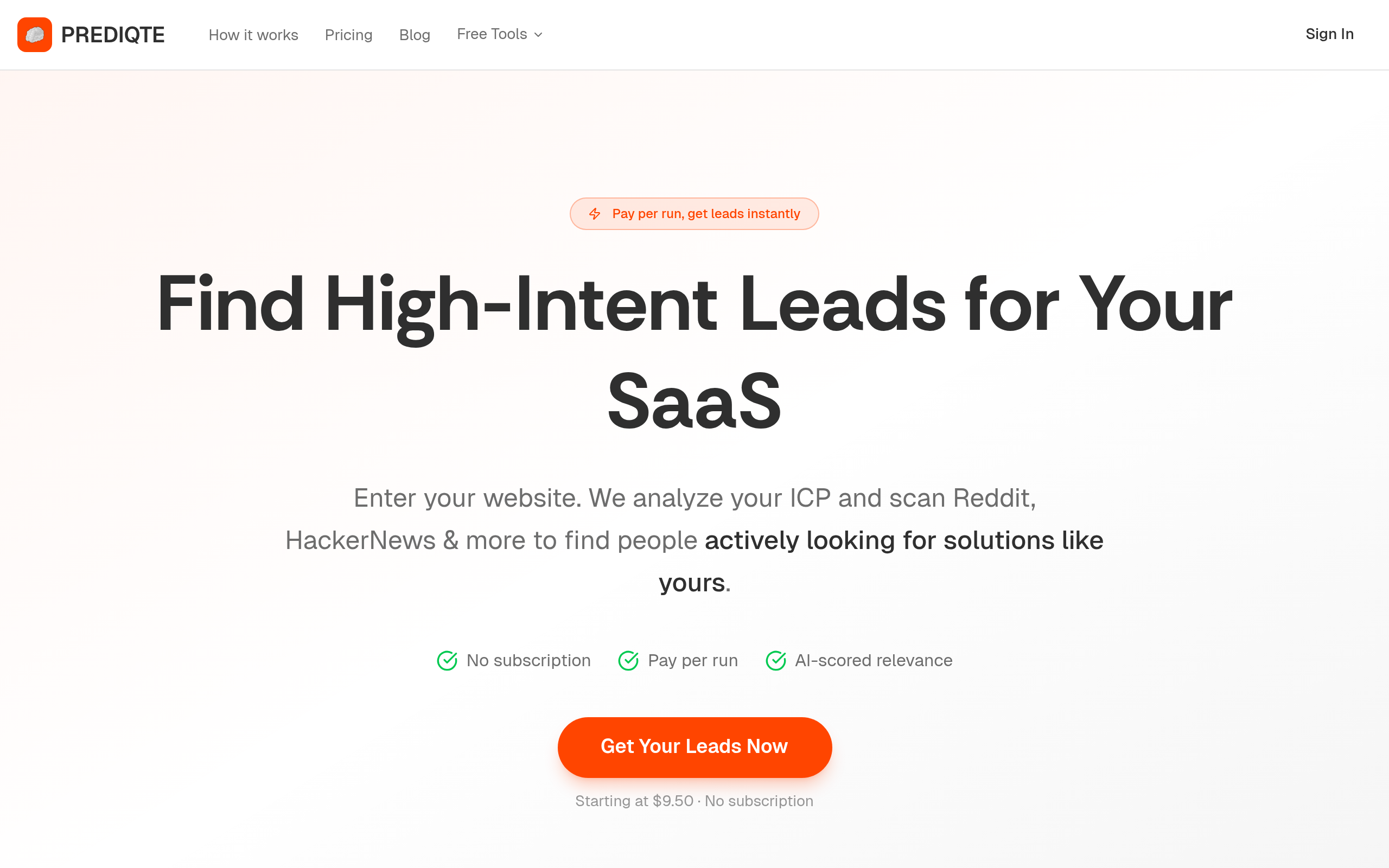 Prediqte helps B2B SaaS founders find high-intent leads without spending hours manually searching forums. Enter your website URL, and our AI analyzes your product to understand your ideal customer profile. Then it scans Reddit, HackerNews, LinkedIn (and more platforms coming soon) to find real conversations where people are asking for exactly what you offer. Each lead comes with a relevance score and an AI-generated explanation of why they match your ICP. Unlike cold lead databases, these are people with genuine buying intent—actively seeking recommendations or complaining about competitors. Get 20-50+ leads per run in under 5 minutes. Pay per run starting at $9.50, no monthly subscription locking you in. Buy runs in bulk for better value.
