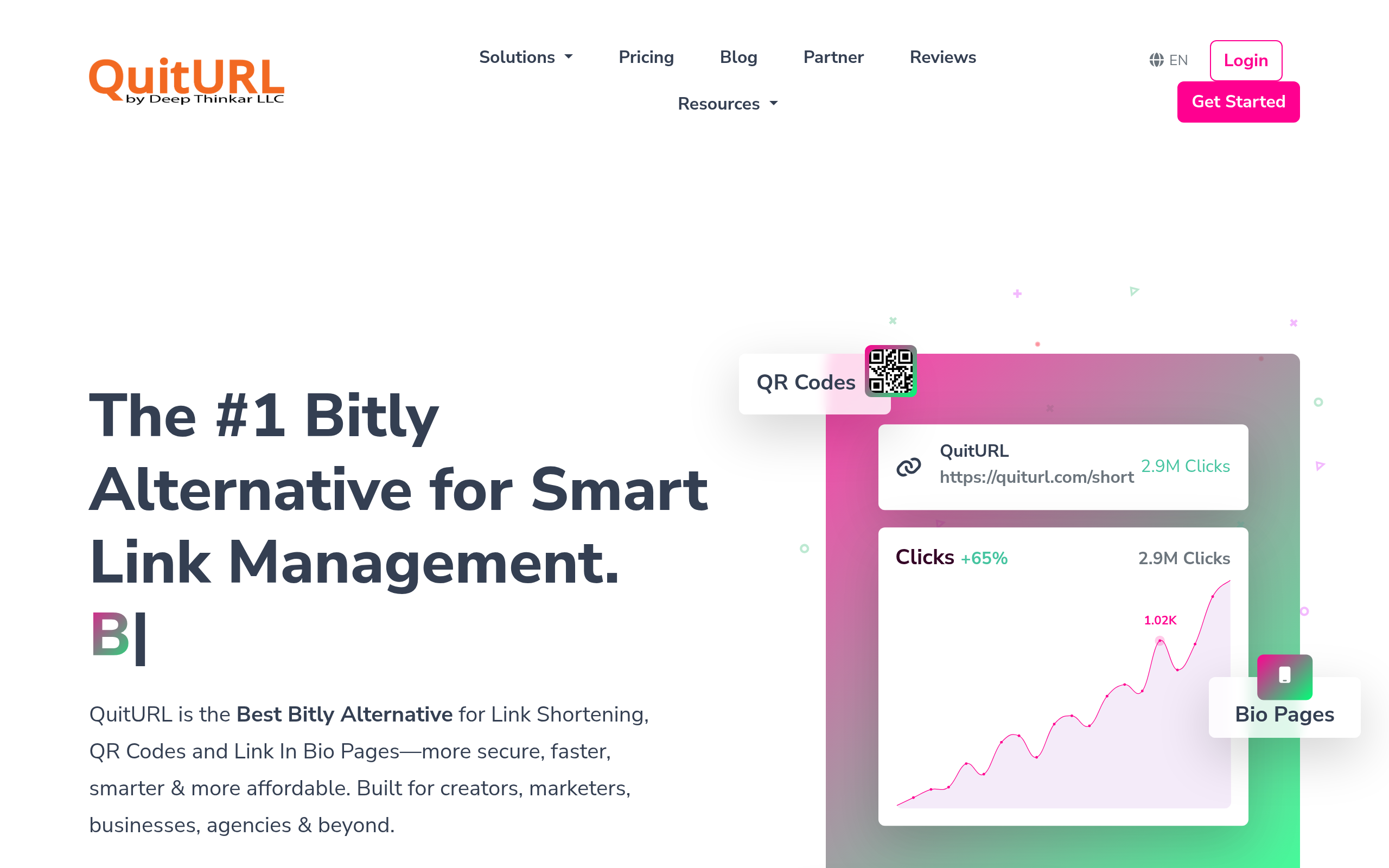 QuitURL is the Best Bitly Alternative for all-in-one Link Management. Get powerful URL Shortening, dynamic QR Codes and a customizable Link-in-Bio Page. Easily create Branded Links, run A/B Tests, track performance with pixels and manage your links securely. Perfect for creators, marketers, businesses and agencies.