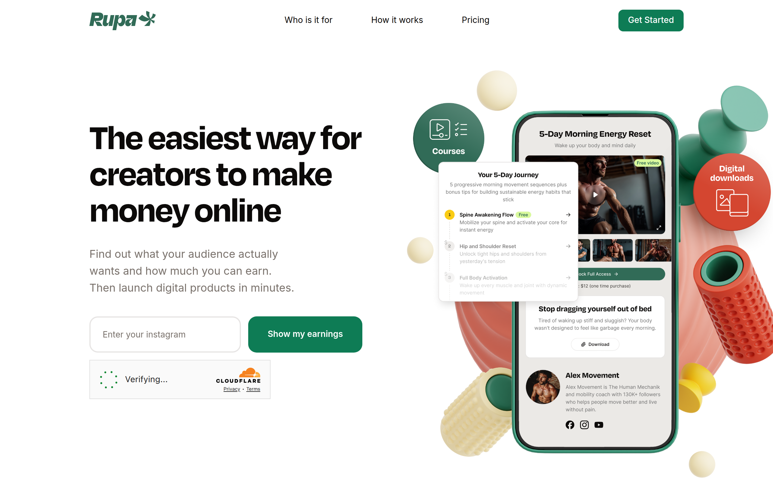 Rupa helps creators earn without relying on brand deals - by selling courses, digital products and bookings directly to their audience.