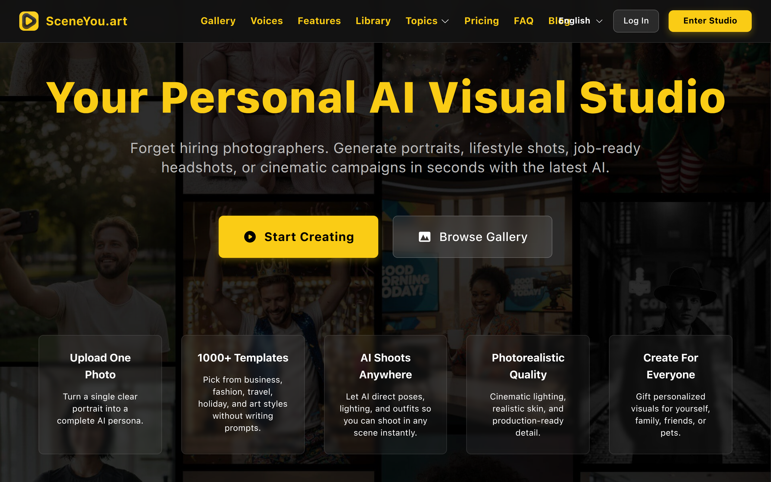 SceneYou.art is an AI personal image generation tool designed to solve modern photography challenges. We understand that getting the perfect photo is often limited by expensive photography costs, tedious makeup processes, and awkwardness when facing the camera. Our product completely changes this situation as your dedicated AI photographer. SceneYou.art eliminates complex AI prompts and lengthy model training processes. Simply upload one photo and enjoy our platform's built-in 1000+ exquisite templates. Whether it's professional business portraits, global travel photos without leaving home, beautiful wedding photos, elegant Chinese traditional style, dynamic fitness photos, or even retro film, ID photos, and cyberpunk avant-garde art styles, you can generate them with one click. We are committed to helping you break free from reality constraints through advanced AI technology, allowing you to have studio-quality masterpieces in seconds and truly achieve photo style freedom.