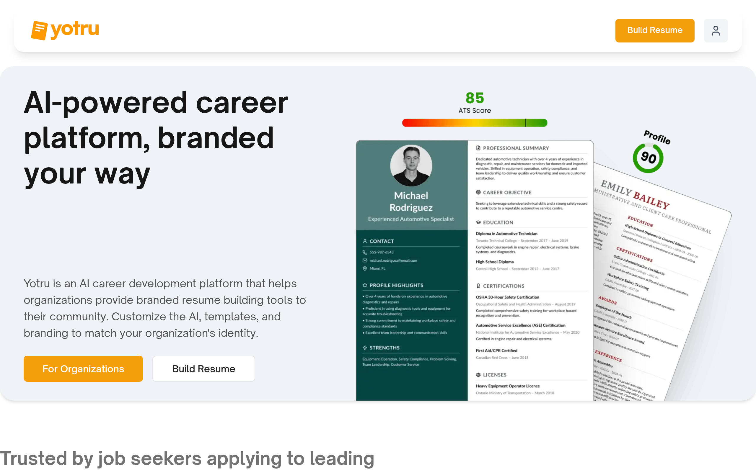 Yotru is a career development platform that uses AI-powered analysis to help job seekers and programs produce screening-ready resumes with consistency