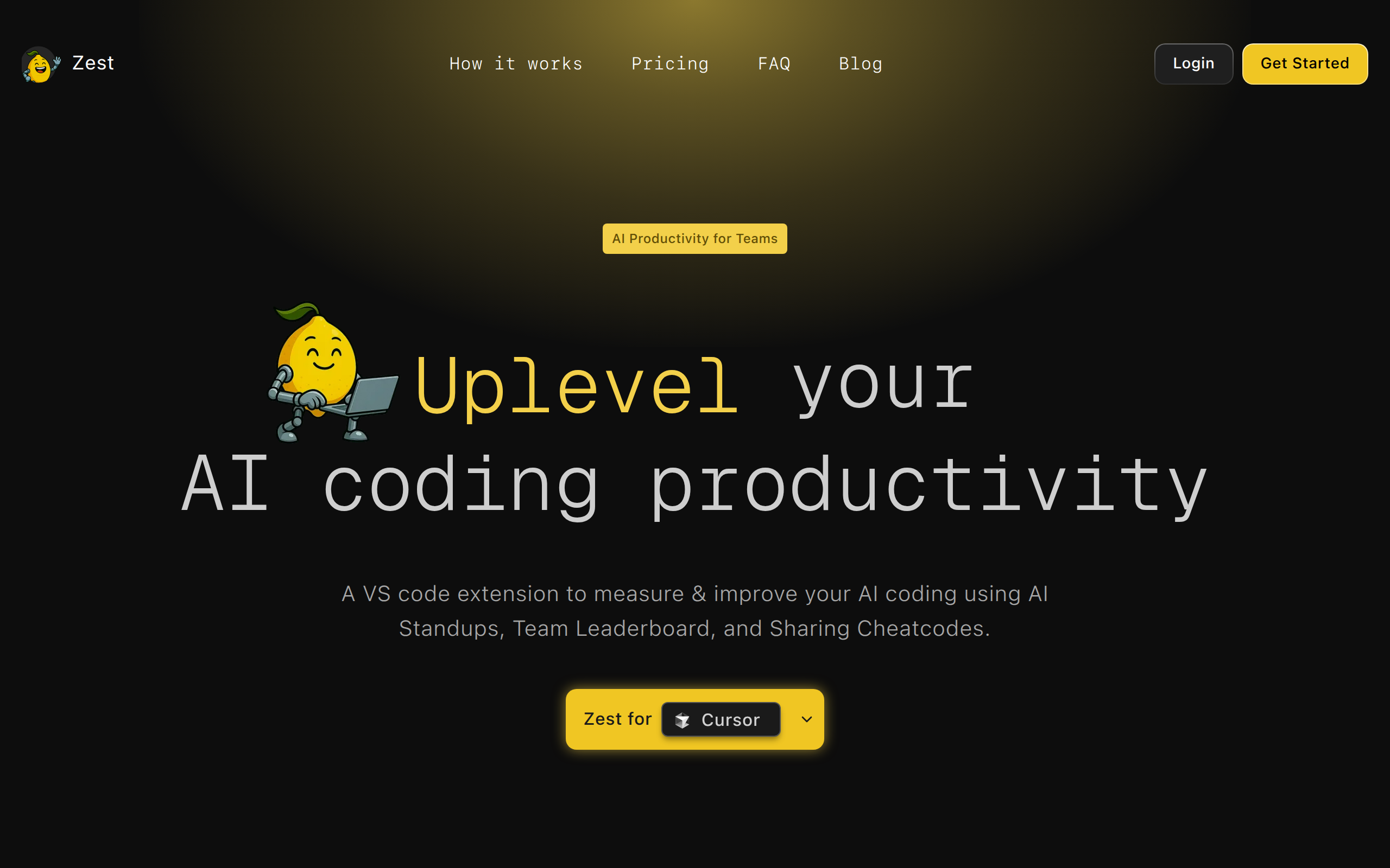 Zest is an AI-powered platform built to enhance developer productivity and optimize team performance. Directly integrated into VS Code, Zest captures coding activity in real time and transforms it into actionable insights, giving teams a clear understanding of how code is written, where time is spent, and which workflows can be improved. Key features include: AI Standups: Automate daily and weekly status updates with summaries of work completed, in-progress tasks, and potential blockers. Metrics Tracking: Monitor individual and team performance with detailed analytics on coding activity, time management, and workflow efficiency. AI Hints & Cheatcodes: Receive contextual guidance and quick solutions to common coding challenges, reducing repetitive work and speeding up problem-solving. Workspace Adoption Analytics: Gain visibility into which tools and workflows are being utilized, helping teams standardize practices and optimize resource usage. Leaderboards: Encourage engagement and healthy competition within teams by tracking achievements, milestones, and performance trends. Zest promotes transparency, accountability, and continuous improvement. By turning everyday coding sessions into measurable insights, it empowers teams to collaborate more effectively, adopt best practices, and continuously enhance development processes—making coding not only faster but smarter.